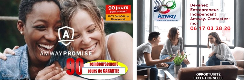 Entrepreneur Indépendant Amway depuis la création d'Amway France en 1978. La société Amway est implantée dans plus de 100 pays & territoires dans le monde depuis 1959. N° 1 mondial de la vente directe avec une GARANTIE SATISFAIT OU REMBOURSE 90 JOURS. Que vous ayez utilisé le produit ou non.